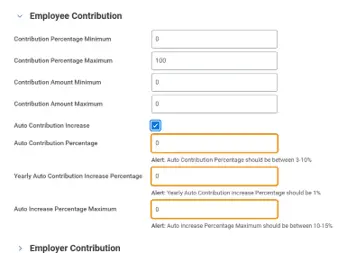 This feature is only available for percentage contributions. Employees can opt in or out of annual contribution increases during an enrollment event.